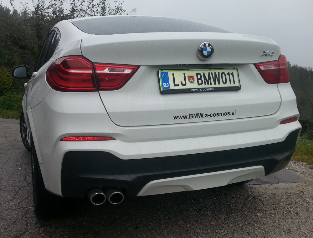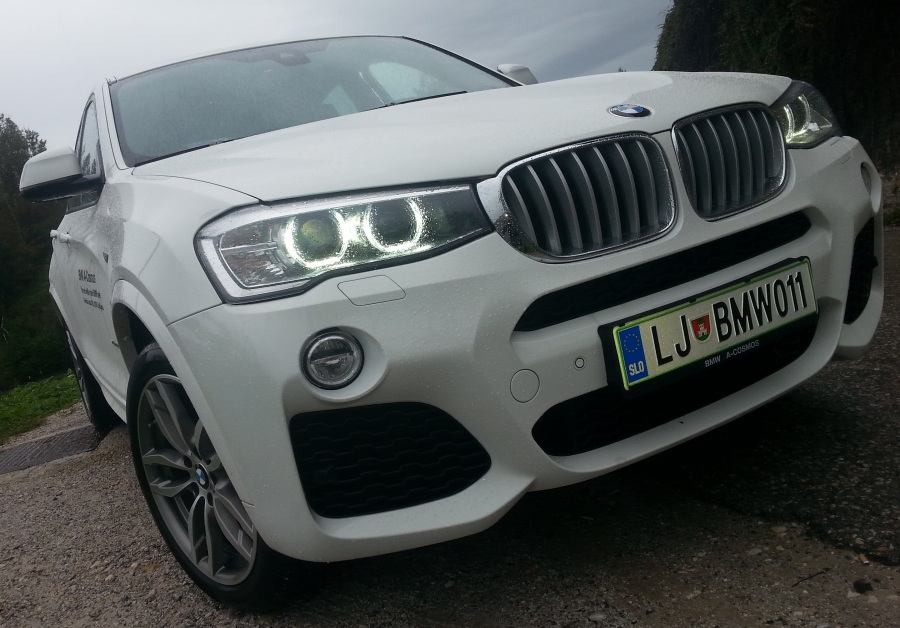 Danes sem se zapeljal z novim, edinstvenim BMW X4. Ta pomanjšana različica BMW X6 je prava paša za oči, saj z ostrimi in agresivnimi linijami kar privablja poglede mimoidočih. Pod pokrovom motorja je v vrsto postavljen dizelski 6 cilindrski motor, s prostornino 3.0L, ki premore 258 konjskih moči, ter z odličnim sistemom prenosa pogona na vsa štiri kolesa xDrive, uspešno pelje po vseh terenih. Na voljo so še trije bencinski motorji s prostornino 2.0L, 2.8L,3.5L, ter še dva dizelska motorja 3.5L ter 2.0L. Poraba avtomobila je dobra, glede na faktorje, ki jo zaznamujejo. In sicer s porabo okoli 6L/100km, ni ravno žejen. Se pa pri bencinskih malo poveča, vendar ne drastično. Okoli 8L/100km, je za mestnega terenca, zelo solidna poraba. Sedeži so zelo udobni, volan ima posebno športno obliko, ter znakec ///M na dnu volana ima poseben čar, ki da vozniku občutek, da je v zelo posebnem avtomobilu. Funkcije za uravnavanje glasnosti, nastavitev tempomata, menjava radijskih postaj, povezava z mobilnikom, vse to je mogoče opravljati z gumbi na volanu. Osemstopenjski samodejni menjalnik omogoča enostavno ter varčno vožnjo, če želimo vzeti vajeti v svoje roke, pa s premikom ročke v levo, dobimo kontrolo nad prestavljanjem z ročkami na volanu.Ročno upravljanje menjalnika je izvrstno narejeno, saj nima prestavljanje nobenega zamika med pritiskom na ročko ter dejansko prestavo. Na voljo so tudi štirje načini vožnje, eco, comfor, sport in Sport+.