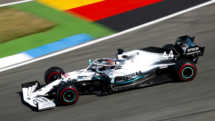 Lewis Hamilton je osvojil najboljši štartni položaj pred dirko v Nemčiji. Ob njem bo dirko začel še Max Verstappen. Drugo štartno vrsto sta zasedla Valtteri Bottas ter Pierre Gasly. Najboljši izmed preostalih je bil tokrat Kimi Raikkonen na petem mestu. Finec je bil tudi zadnji znotraj sekunde najhitrejšega časa. Tretjo vrsto je zaključil Romain Grosjean. Za njima so v deseterici zaključili še Carlos Sainz, Sergio Perez, Nico Hulkenberg ter Charles Leclerc, ki zaradi težav z dirkalnikom v zadnjem delu ni nastopil.