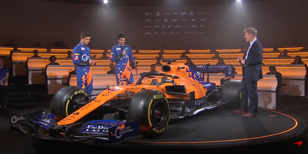 Moštvo McLaren je danes v Wokingu predstavilo svoj dirkalnik za prihajajočo sezono. Na dirkalniku še vedno prevladuje papaja oranžna barva shema kot v pretekli sezoni, le da je tokrat poleg prisotne nekaj več modre barve. Vidno pa je tudi večje število pokroviteljev, med katerimi sta letos na novo podjetij Estrella Galicia 0,0 in Huski Chocolate.