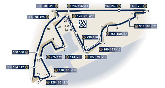 Na dirkališču sta dve DRS območji: eno na dolgi ravnini med sedmim in osmim ovinkom ter drugo po desetem ovinku.