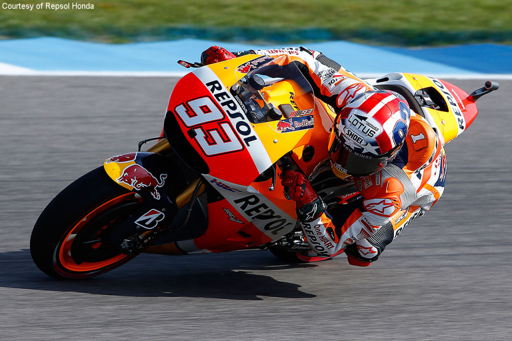 Svetovni prvak Marc Marquez je v nedeljo zmagal na dirki za Veliko nagrado Indianapolisa, kjer je ciljno črto prečkal dobre pol sekunde pred Jorgejem Lorenzom, ki je do zadnjih treh krogov vodil. Marquez si je z zmago zagotovil zmagoslavje na vseh svojih sedmih štartih na ameriških dirkališčih v najelitnejši seriji Moto GP. Na tretjem mestu je končal Valentino Rossi, katerega prednost v točkovanju svetovnega prvenstva je padla na devet točk.