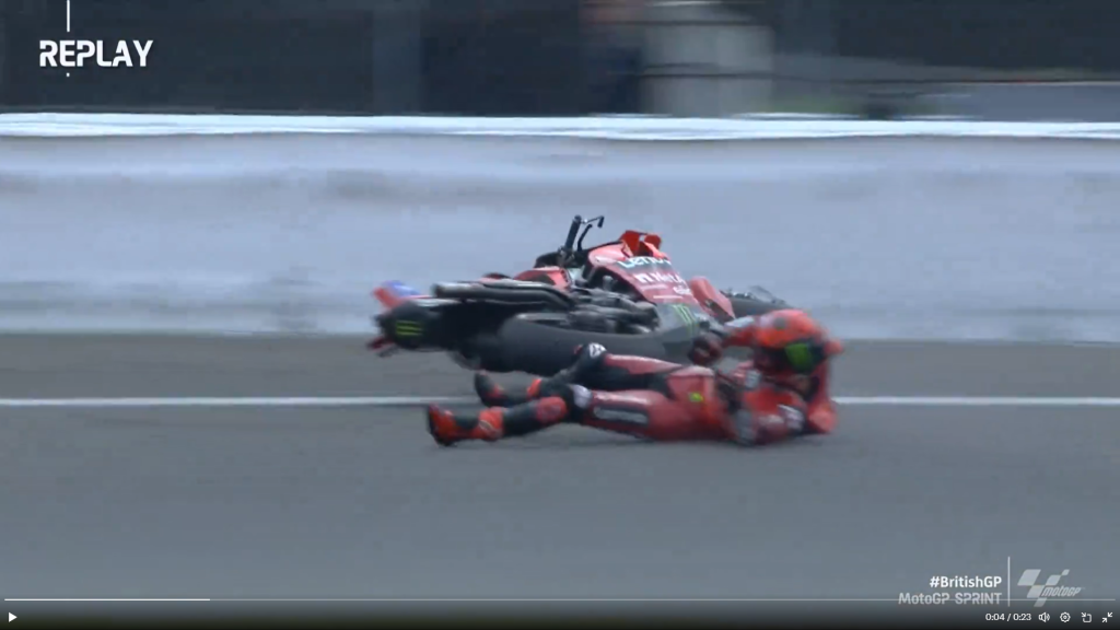 Aktualni svetovni prvak Pecco Bagnaia je na sprint dirki v Silverstonu padel in odstopil s tretjega mesta.